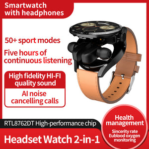 Bluetooth Hörlurar 2-i-1 Smartklocka med Hälsomonitor